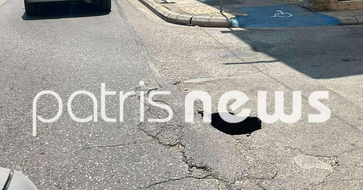 Ιδιαίτερη προσοχή απαιτείται από οδηγούς και πεζούς στη συμβολή των οδών Ερμού και Αγίου Σπυρίδωνος, στο κέντρο του Πύργου, όπου σημειώθηκε υποχώρηση του οδοστρώματος και άνοιξε τρύπα στη μέση του δρόμου.