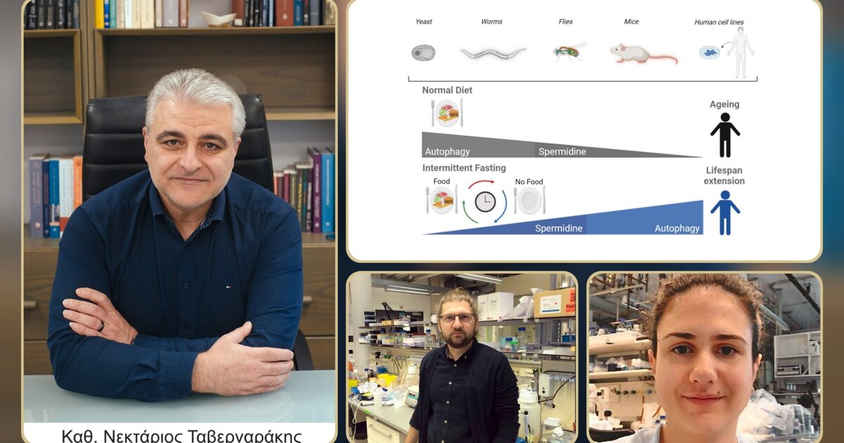 Πρόσφατη έρευνα στο Ινστιτούτο Μοριακής Βιολογίας και Βιοτεχνολογίας (ΙΜΒΒ) του Ιδρύματος Τεχνολογίας και Έρευνας (ΙΤΕ) και στα Πανεπιστήμια Paris Cité της Γαλλίας και Graz της Αυστρίας, τα αποτελέσματα της οποίας δημοσιεύονται σήμερα στο έγκριτο διεθνές επιστημονικό περιοδικό Nature Cell Biology, αποκαλύπτει τον μηχανισμό με τον οποίο η σπερμιδίνη ρυθμίζει την αυτοφαγία, δηλαδή τη διαδικασία που εξασφαλίζει την ανακύκλωση συστατικών μέσα στο κύτταρο, η οποία προάγει τις αντιγηραντικές επιδράσεις της διαλειμματικής δίαιτας.
