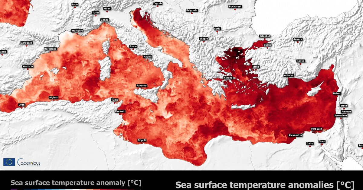 Μετά τις σημαντικές αποκλίσεις της θερμοκρασίας στις ελληνικές θάλασσες, έχει αξία να δει κανείς τι γίνεται σε ολόκληρη τη Μεσόγειο.