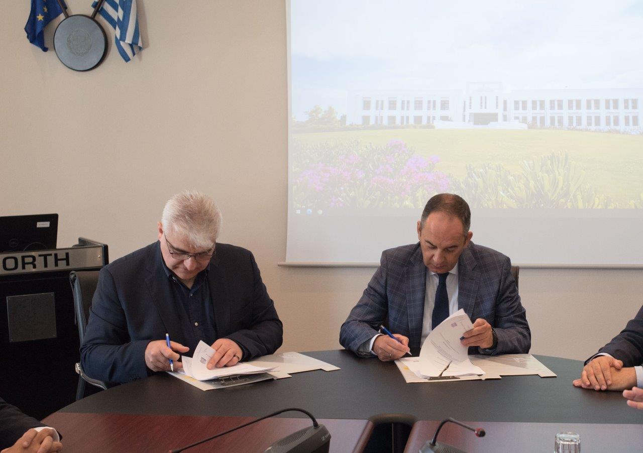 Υπογραφές στην προγραμματική συμφωνία μεταξύ του υπουργού Ναυτιλίας Γιάννη Πλακιωτάκη και του Προέδρου του ΙΤΕ, καθ.Νεκτάριου Ταβερναράκη, για την υλοποίηση του καινοτόμου έργου