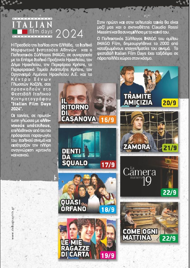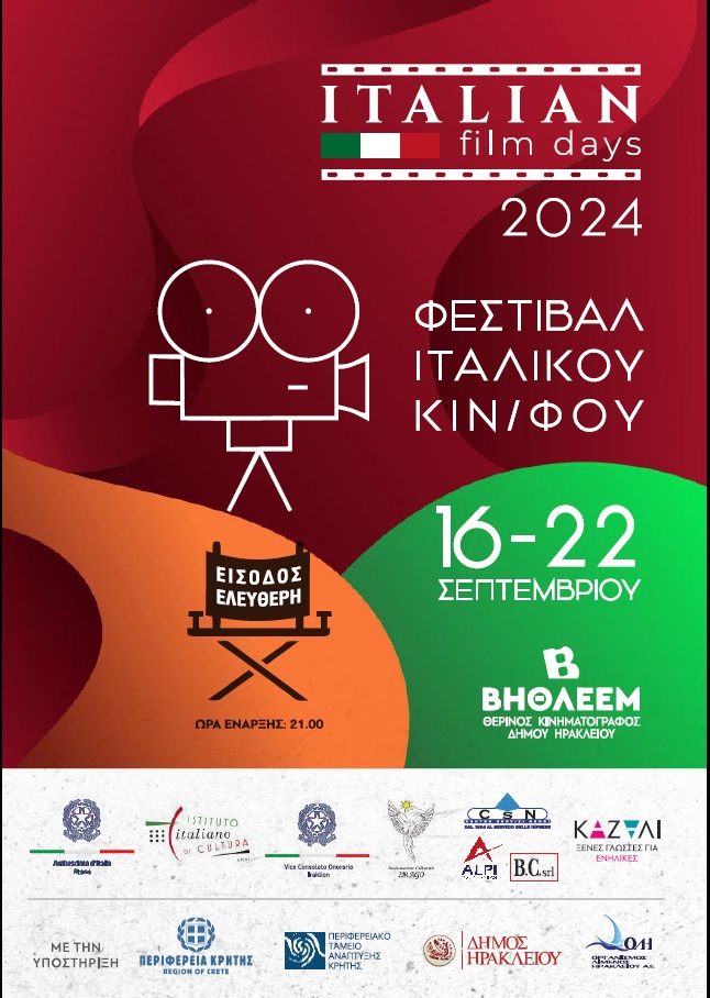 Πρεμιέρα σήμερα Δευτέρα 16 Σεπτεμβρίου 2024 για Φεστιβάλ Ιταλικού Κινηματογράφου “Italian Film Days 2024”, στον Δημοτικό θερινό Κινηματογράφο Βηθλεέμ.