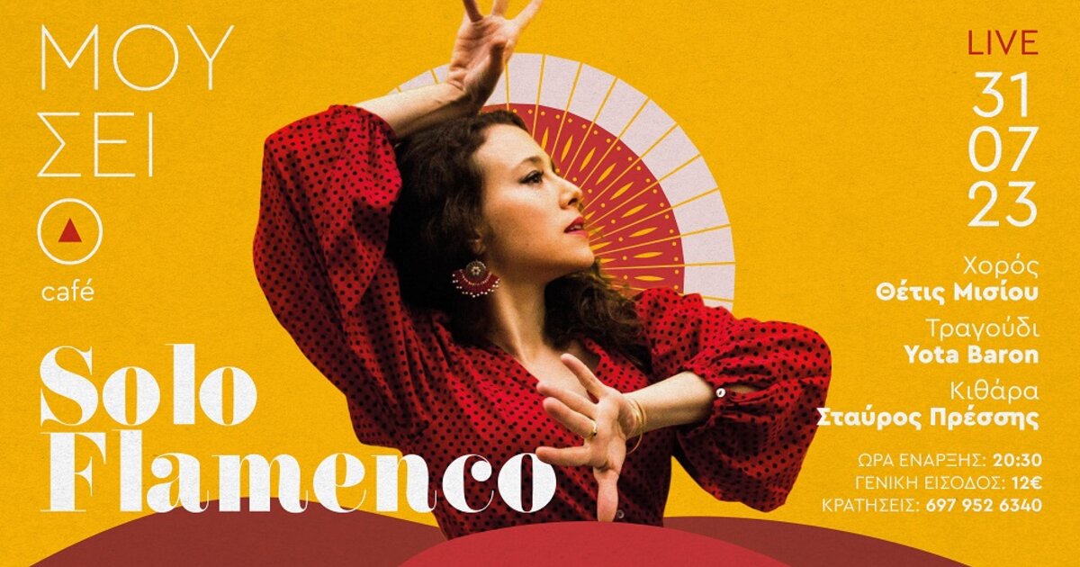 Την Δευτέρα 31 Ιουλίου στις 20:30 στο μπαλκόνι του Καφέ το Αρχαιολογικό Μουσείο Χανίων υποδέχεται τους Θέτις Μισίου, Yota Baron και Σταύρο Πρέσση, για μια βραδιά γεμάτη πάθος, τραγούδι, μουσική και χορό! Για μιά βραδιά.....Φλαμένγκο