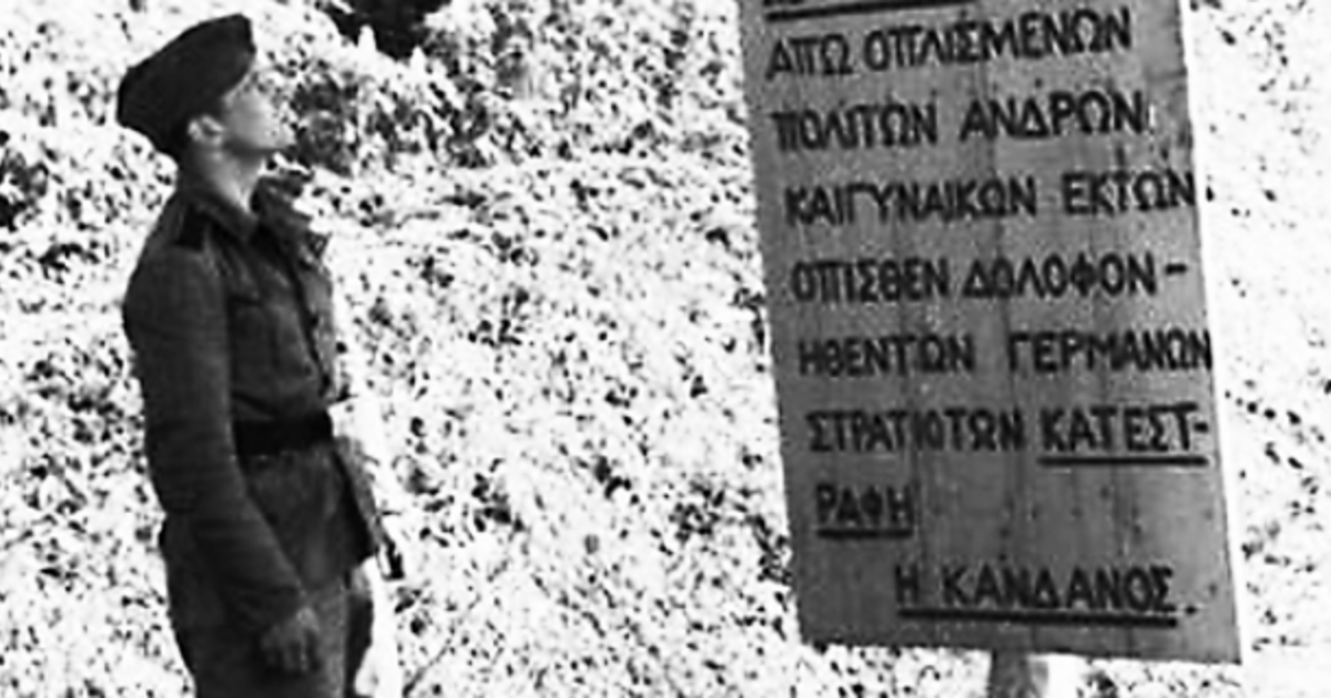 “…Το χωριό Κάνδανος κοντά στα Χανιά, όπου σε μάχες έχασαν τη ζωή τους αρκετοί Γερμανοί, ήταν το πρώτο χωριό στην Ευρώπη, το οποίο έκαψαν ολοσχερώς, προσπάθησαν να εκθεμελιώσουν κάθε πέτρα οικήματος και απαγόρευσαν στους κατοίκους να επιστρέψουν στα σπίτια τους όσο διαρκούσε η κατοχή. Είναι η μοναδική περίπτωση εγκλήματος πολέμου, όπου ο θύτης όχι μόνον αναγνωρίζει το έγκλημά του, αλλά το προπαγανδίζει προς παραδειγματισμό των υπολοίπων.