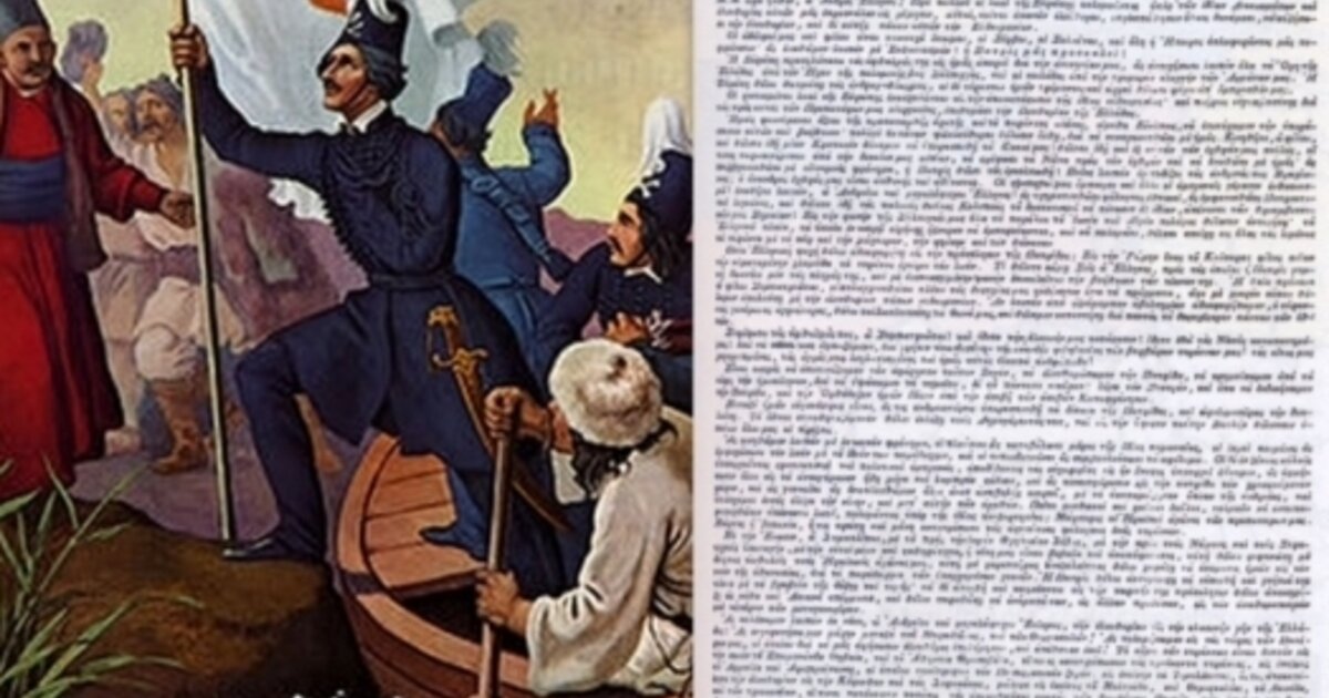 «…Η ώρα ήλθεν, ω Άνδρες Έλληνες! Πρό πολλού οι λαοί της Ευρώπης, πολεμούντες υπέρ των ιδίων Δικαιωμάτων και ελευθερίας αυτών, μας επροσκάλουν εις μίμησιν, αυτοί, καίτοι οπωσούν ελεύθεροι, επροσπάθησαν όλαις δυνάμεσι να αυξήσωσι την ελευθερίαν, και δι’ αυτής πάσαν αυτών την Ευδαιμονίαν. Οι αδελφοί μας και φίλοι είναι πανταχού έτοιμοι, οι Σέρβοι, οι Σουλιώται, και όλη η Ηπειρος, οπλοφορούντες μας περιμένωσιν· ας ενωθώμεν λοιπόν με Ενθουσιασμόν! η Πατρίς μάς προσκαλεί!