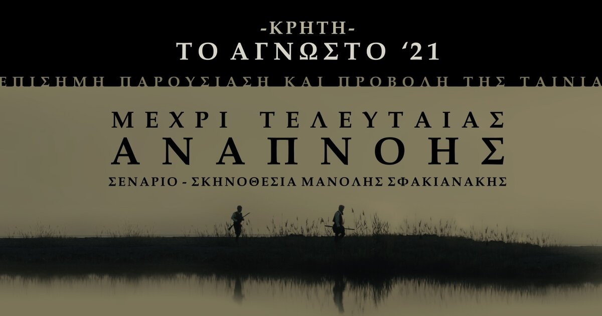 Το ερχόμενο Σάββατο 13 Δεκεμβρίου 2025 στις 19:00 στο Εμπορικό Επιμελητήριο Ηρακλείου (ΚΟΡΩΝΑΙΟΥ 9) στην αίθουσα Καστελλάκη, θα παρουσιαστεί η ταινία - ιστορικό ντοκιμαντέρ, σε σενάριο και σκηνοθεσία του Μανόλη Σφακιανάκη με τίτλο "Μέχρι τελευταίας πνοής".