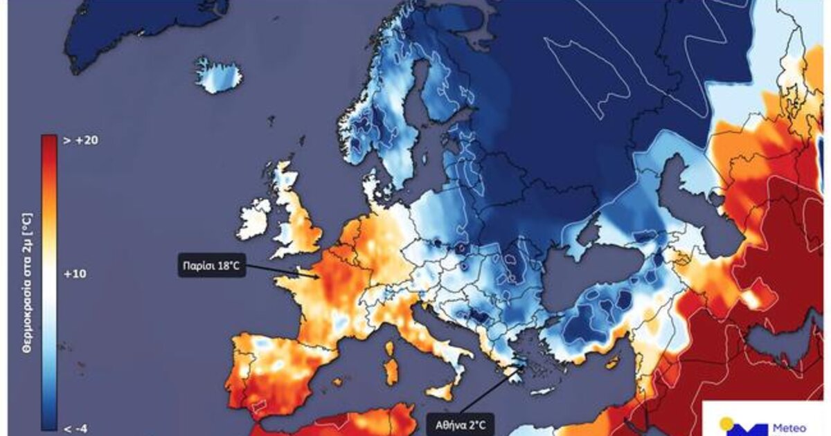 Ακραίες θερμοκρασιακές διαφορές χθες, μεταξύ Δυτικής και Ανατολικής Ευρώπης