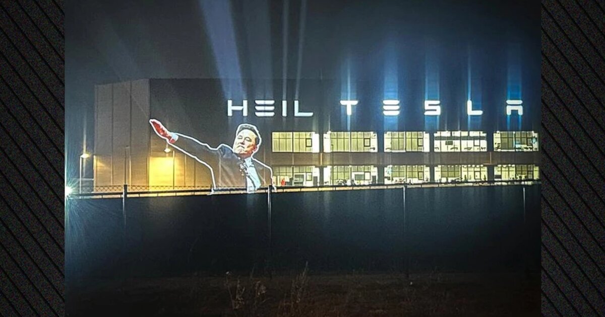 Γερμανοί ακτιβιστές εμφάνισαν με προβολείς αργά την Τετάρτη τον Έλον Μασκ στον viral πλέον ναζιστικό χαιρετισμό της Δευτέρας και το μήνυμα hail δίπλα από το λογότυπο της Tesla στα προάστια του Βερολίνου.