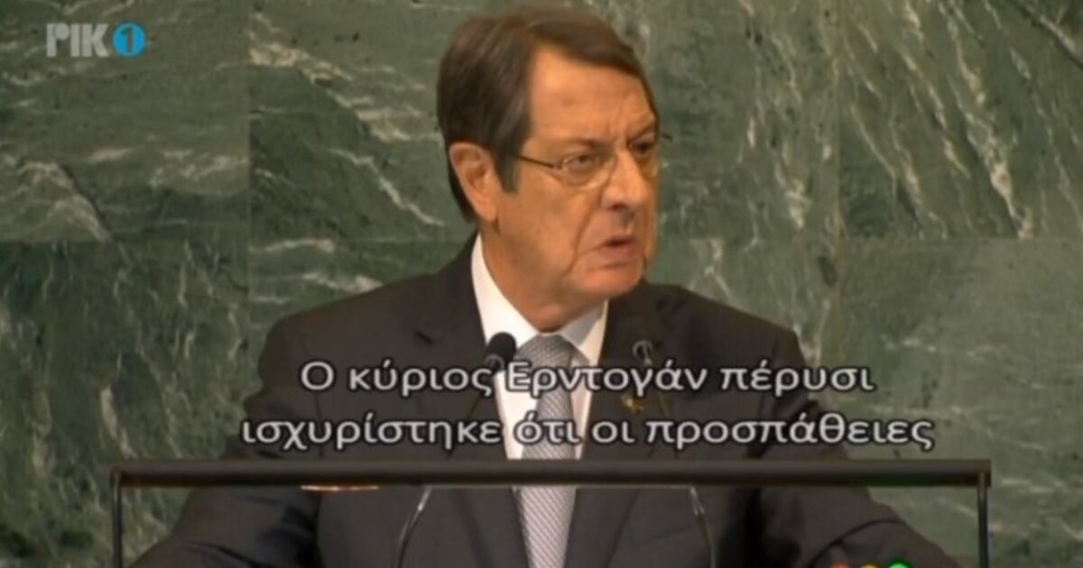 Ο πρόεδρος της Κύπρου καταφέρθηκε εναντίον του Ρετζέπ Ταγίπ Ερντογάν από το βήμα της Γενικής Συνέλευσης του ΟΗΕ.
