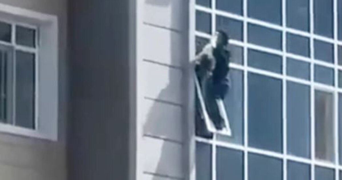 who was hanging from an 8th-floor window of a building in Nur-Sultan.