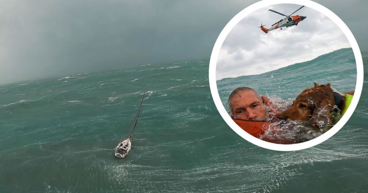 Στην θάλασσα της νήσου Σάνιμπελ στα ανοιχτά της Φλόριδα, το ιστιοπλοϊκό του άνδρα και του σκύλου του χτυπήθηκε από τον Τυφώνα Χέλεν. Ελικόπτερο με δύτες της Αμερικανικής ακτοφυλακής έσπευσε στη διάσωση τους.