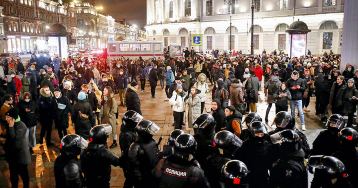 Παρά τις προειδοποιήσεις των Αρχών ότι όποιος λάβει μέρος σε διαδηλώσεις που δεν έχουν άδεια θα «βρεθεί αντιμέτωπος με τις συνέπειες», χιλιάδες διαδηλωτές έκαναν την εμφάνισή τους χθες το βράδυ στην πλατεία Πούσκιν, δίπλα στην Κόκκινη Πλατεία, σε κεντρικό σημείο της Αγίας Πετρούπολης, αλλά και σε δεκάδες άλλες ρωσικές πόλεις, φωνάζοντας αντιπολεμικά συνθήματα. Οι Αρχές προχώρησαν σε τουλάχιστον 700 συλλήψεις. Η ακτιβίστρια Μαρίνα Λιτβίνοβιτς δεν πρόλαβε καν να φθάσει έως τις διαδηλώσεις. «Με συνέλαβαν με το που βγήκα από το σπίτι μου», έγραψε στην εφαρμογή Telegram. Η Λιτβίνοβιτς ήταν μεταξύ αυτών που κάλεσαν τον κόσμο στις χθεσινοβραδινές διαδηλώσεις.