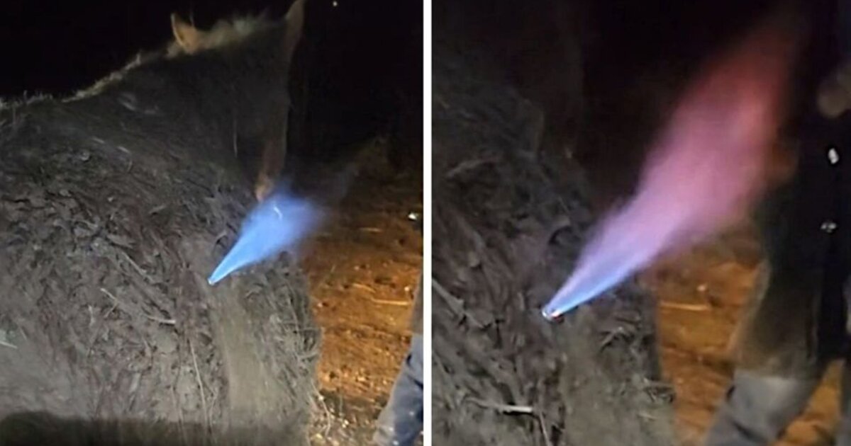 Το παράξενο αλλά αποτελεσματικό είναι ότι ο κτηνίατρος πυροδότησε τα αέρια μεθανίου που εξήλθαν από την κοιλιά του ταλαίπωρου ζώου, με αποτέλεσμα ένα ...πύρινο θέαμα!
