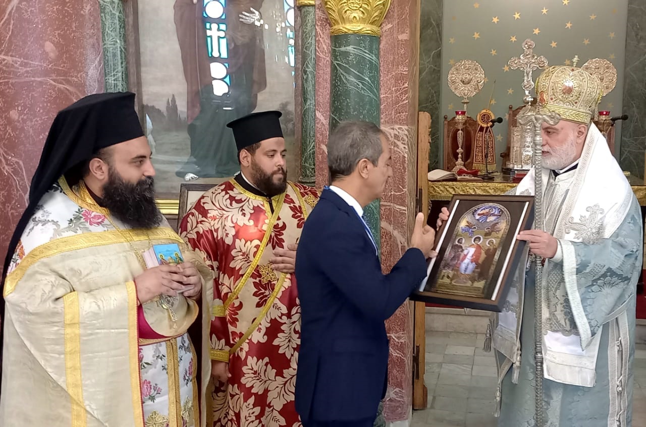 Τέλος, την Κυριακή, 23η Οκτωβρίου, παρέστησαν συμπροσευχόμενοι κατά την τελεσθείσα Θεία Λειτουργία από τον Σεβ.Μητροπολίτη Μέμφιδος κ.Νικόδημο, Πατριαρχικό Επίτροπο Καΐρου, στην πολυαιώνια Ιερά Πατριαρχική Μονή Αγίου Γεωργίου Παλαιού Καΐρου, μετά το πέρας της οποίας παρετέθη εόρτια δοχή προς τιμήν τους.