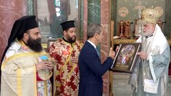 Κατά την επίσκεψη η ΑΘΜ περιέκοσμησε τον κ.Βίγκα με τον Ανώτερο Ταξιάρχη του Τάγματος Οσίου Σάββα του Ηγιασμένου για την συμβολή του προς τον Ελληνισμό