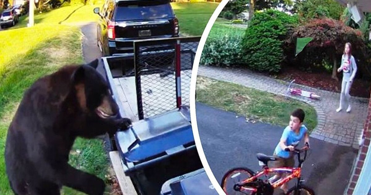 Αρκούδα τρομοκρατεί παιδιά στην αυλή του σπιτιού τους
