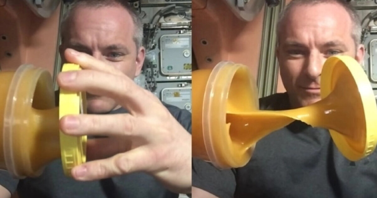 Όπως θα δείτε στο βίντεο, ο εν λόγω αστροναύτης αποφάσισε έτσι να ανοίξει ένα βάζο με μέλι, ώστε να δει την σύσταση που θα έχει το μέλι.