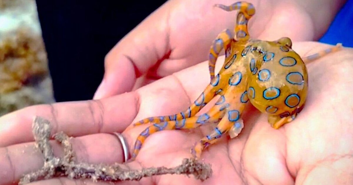 Αυτό που προφανώς δεν γνώριζαν όταν το βρήκαν ήταν ότι κρατούσαν ένα από τα πλέον θανατηφόρα θαλάσσια πλάσματα. Διότι το μικροσκοπικό χταπόδι με μπλε δακτυλίους είναι δηλητηριώδες κεφαλόποδο που σκοτώνει σε δευτερόλεπτα!