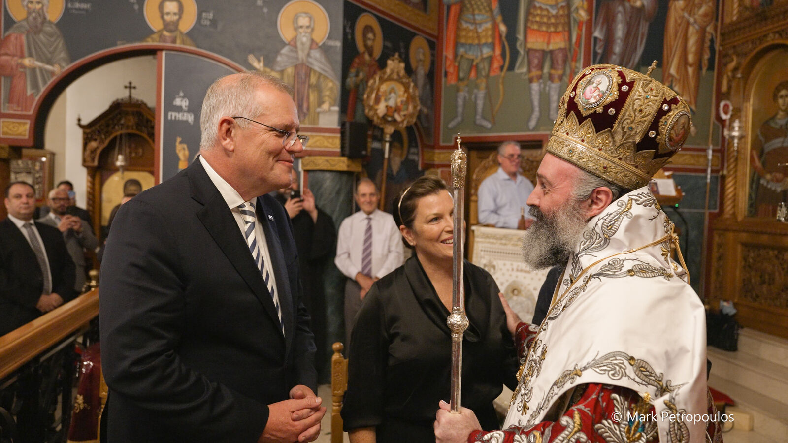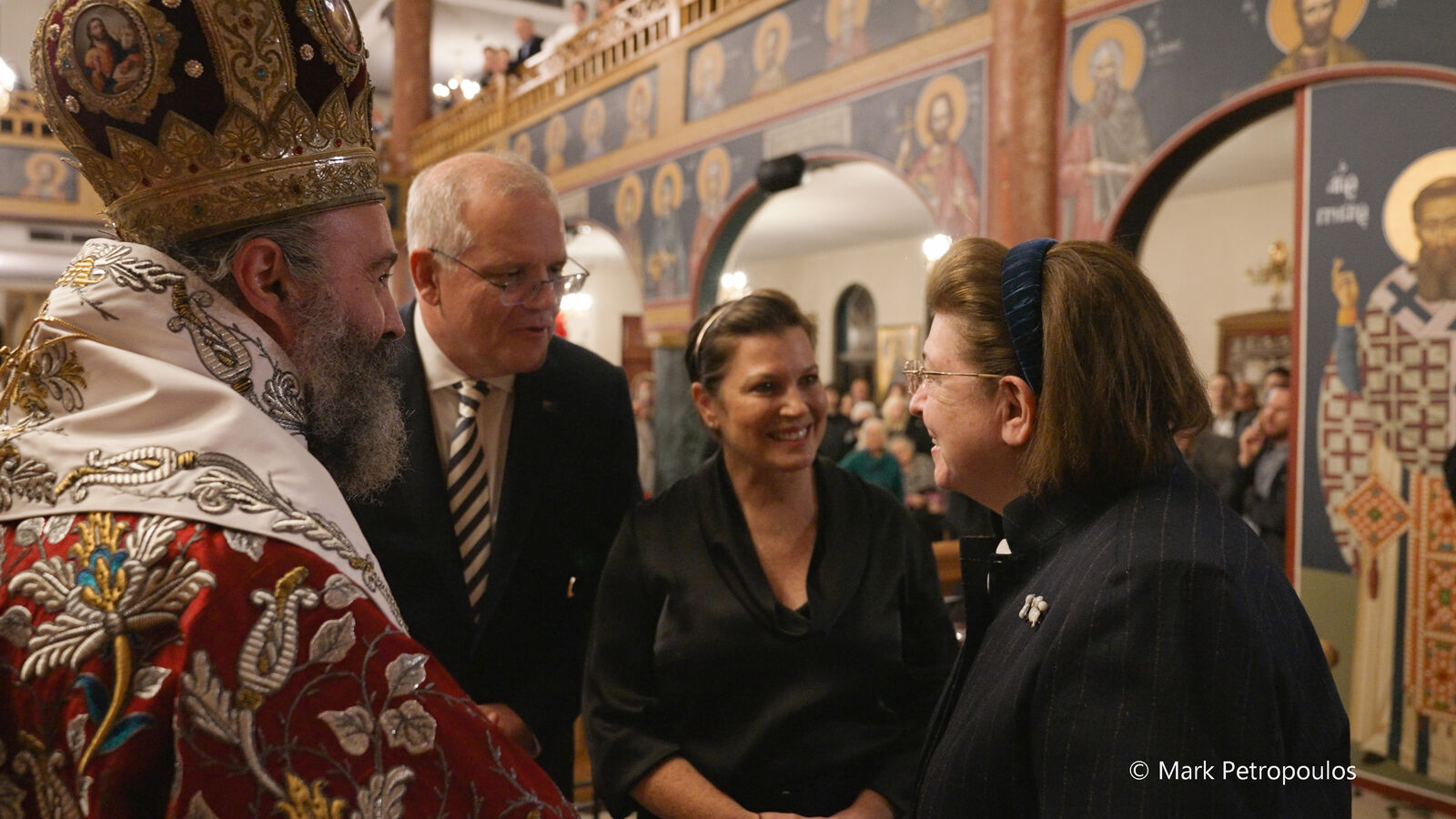 Κατόπιν, ο Σεβασμιώτατος, αφού ευχαρίστησε θερμά για την τιμητική παρουσία τους τον Αυστραλό Πρωθυπουργό και την Ελληνίδα Υπουργό Πολιτισμού, ευχήθηκε σε όλους χρόνια πολλά, φωτοφόρα και χαρούμενα. «Ο Θεός να ευλογεί τις οικογένειές σας. Ο Θεός να ευλογεί τους νέους μας. Ο Θεός να ευλογεί τον Ελληνισμό της πέμπτης ηπείρου», ανέφερε, μεταξύ άλλων, απευθυνόμενος στους πιστούς, και αναφώνησε μαζί τους: «Ζήτω η Ελλάδα! Ζήτω η Αυστραλία! Ζήτω η Εκκλησία μας!».