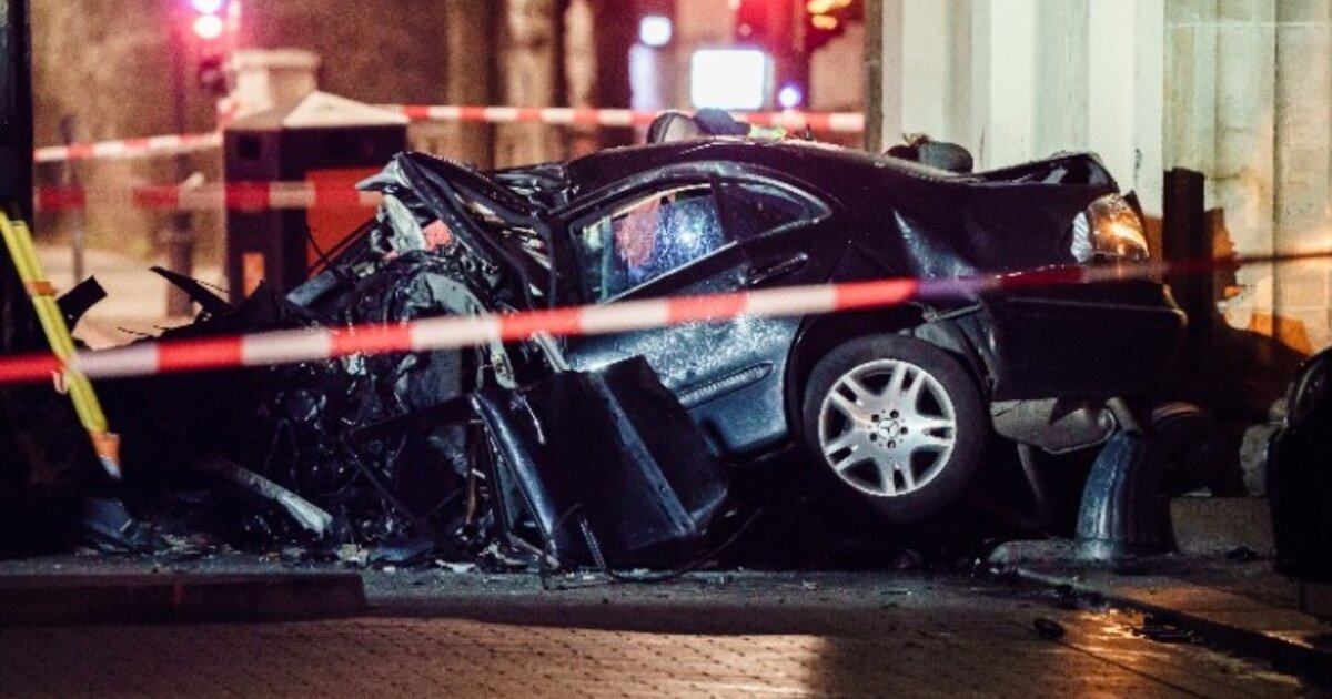 Η γερμανική ταμπλόιντ Bild δημοσίευσε φωτογραφία μαύρου σεντάν το μπροστινό μέρος του οποίου έχει μετατραπεί σε άμορφη μάζα και ανέφερε πως η περιοχή γύρω από την Πύλη αποκλείστηκε από την αστυνομία.