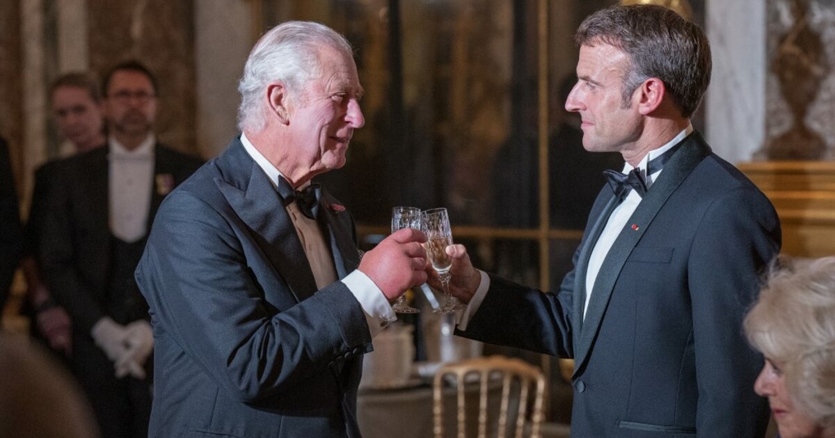Στα Άνακτορα των Βερσαλλιών, ο βασιλιάς Κάρολος του Ηνωμένου Βασιλείου έκανε πρόποση σε άπταιστα γαλλικά «για τον κ. Πρόεδρο, την κα. Μακρόν και τον γαλλικό λαό, καθώς και για την “εγκάρδια συνεννόηση”», με τον Γάλλο Πρόεδρο Εμανουέλ Μακρόν να ανταποδίδει τα θερμά λόγια: «Το ότι επιλέξατε να επισκεφτείτε τη Γαλλία αυτούς τους πρώτους μήνες της βασιλείας σας, είναι ένα σημάδι φιλίας και εμπιστοσύνης».