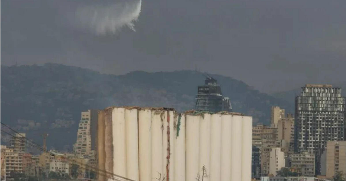 Ελικόπτερα του στρατού του Λιβάνου, πέταξαν πάνω από την περιοχή με τα γκρεμισμένα σιλό, στο λιμάνι της Βηρυτού, για να ρίξουν νερό και να προσπαθήσουν να σβήσουν πλήρως τη φωτιά, που έκαιγε επί τρεις εβδομάδες, πριν γκρεμιστεί τελικά ένα μεγάλο τμήμα από το συγκρότημα.