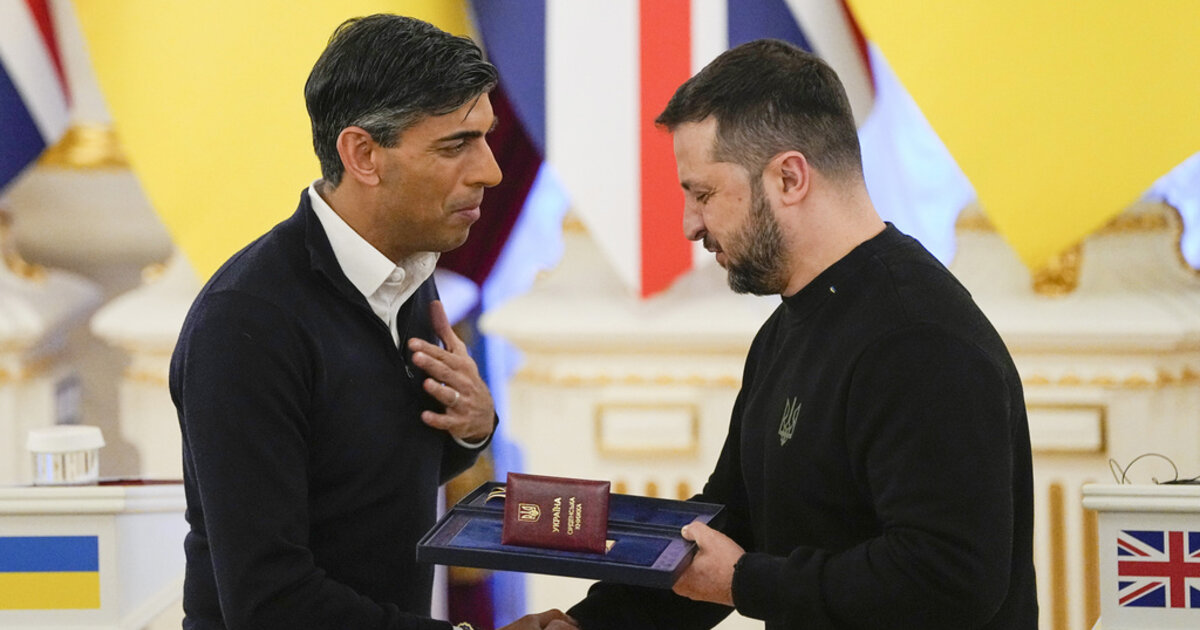Ο Ουκρανός πρόεδρος Βολοντίμιρ Ζελένσκι και ο Βρετανός πρωθυπουργός Ρίσι Σούνακ υπέγραψαν σήμερα μια συμφωνία για την ασφάλεια μεταξύ των δύο χωρών στο Κίεβο. Ο Ζελένσκι τη χαρακτήρισε ως μια «άνευ προηγούμενου συμφωνία για την ασφάλεια».