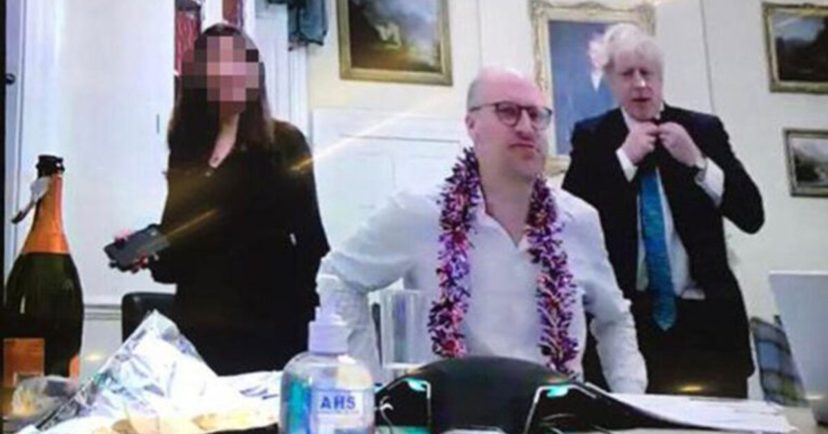 Η εικόνα, η οποία δημοσιεύτηκε την Τετάρτη από την εφημερίδα Daily Mirror, δείχνει τον Τζόνσον να στέκεται δίπλα σε μέλη του προσωπικού της Ντάουνινγκ Στριτ, ενώ στο πλάνο διακρίνεται ένα ανοιχτό μπουκάλι, πιθανώς σαμπάνιας.