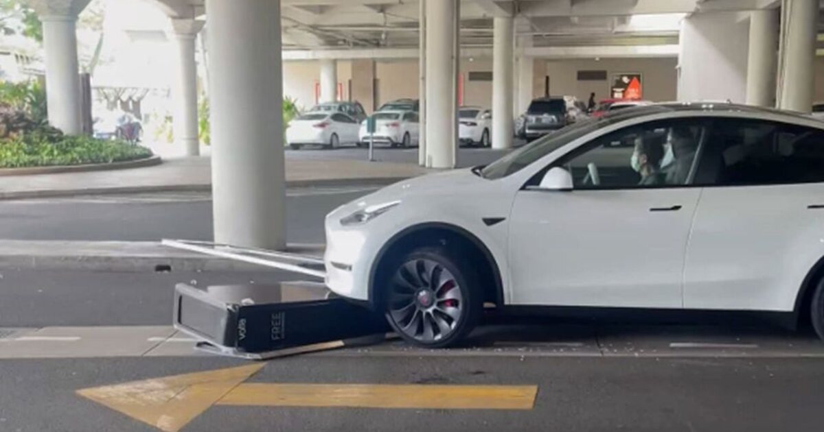 Και όμως, δεν το αντελήφθη... Ηλικιωμένη οδηγός ενός Tesla χτύπησε μονάδα φόρτισης στην Χονολουλού, Χαβάη.