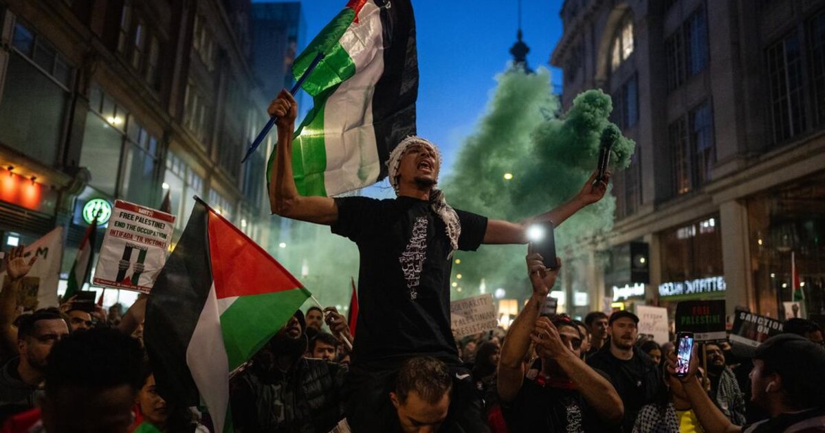 Οι διαδηλωτές, πολλοί εκ των οποίων κρατούσαν παλαιστινιακές σημαίες και πλακάτ με το σύνθημα «Ελευθερώστε την Παλαιστίνη», συγκεντρώθηκαν κοντά στην Όξφορντ Σέρκους απ’ όπου σκοπεύουν να κάνουν πορεία μέχρι την Ντάουνινγκ Στριτ, την κατοικία του Βρετανού πρωθυπουργού Ρίσι Σούνακ.