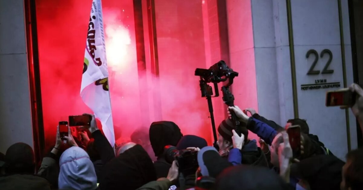 Η εισβολή έγινε από 100 σιδηροδρομικούς που διαδήλωσαν σε δρόμο του Παρισιού με μπουτίκ πολυτελείας και μπήκαν στα γραφεία του ομίλου πολυτελών ειδών LVMH, ενώ ανέβηκαν και στον πρώτο όροφο πριν φύγουν.