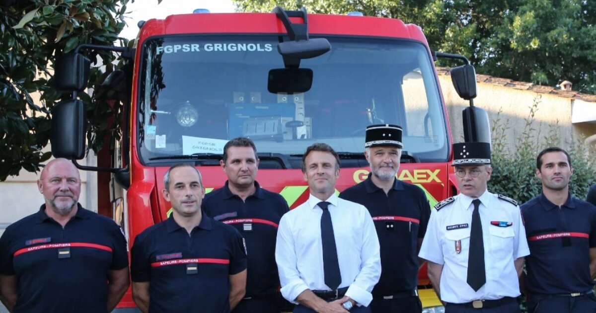 Μπροστά από τους λεπτομερείς χάρτες με τις φωτιές που παρουσίασε στον πρόεδρο Μακρόν, ο αρχηγός του πυροσβεστικού σώματος της Ζιρόντ Μαρκ Βερμελέν αναφέρθηκε στην εξέλιξη των πυρκαγιών και στις δράσεις των πυροσβεστών στην προσπάθειά τους να τις περιορίσουν προστατεύοντας παράλληλα τις κατοικίες.