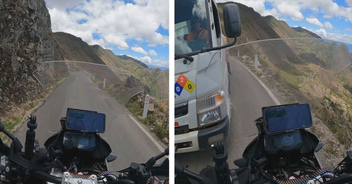 Τον... χάρο με τα μάτια του είδε μοτοσικλετιστής σε ορεινό δρόμο του Σελεντίν στο Περού, στις 11 Νοεμβρίου, όταν λίγο έλειψε να τον εμβολίσει φορτηγό στέλνοντας τον στο γκρεμό!