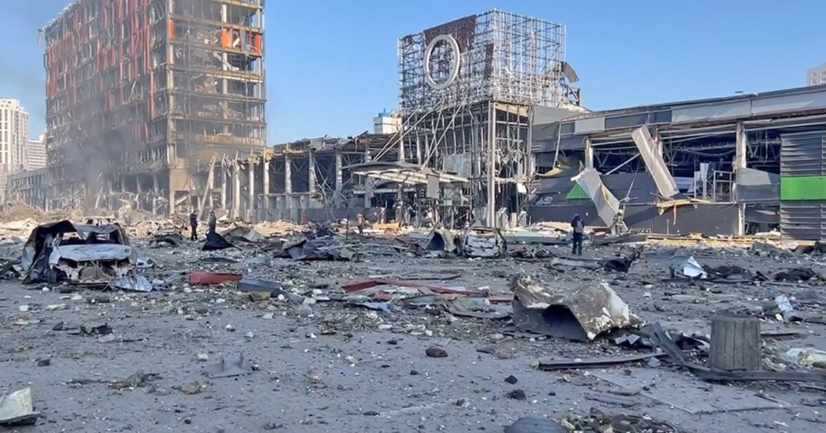 Εικόνες απόλυτης καταστροφής στο Κίεβο μετά τον βομβαρδισμό του εμπορικού κέντρου