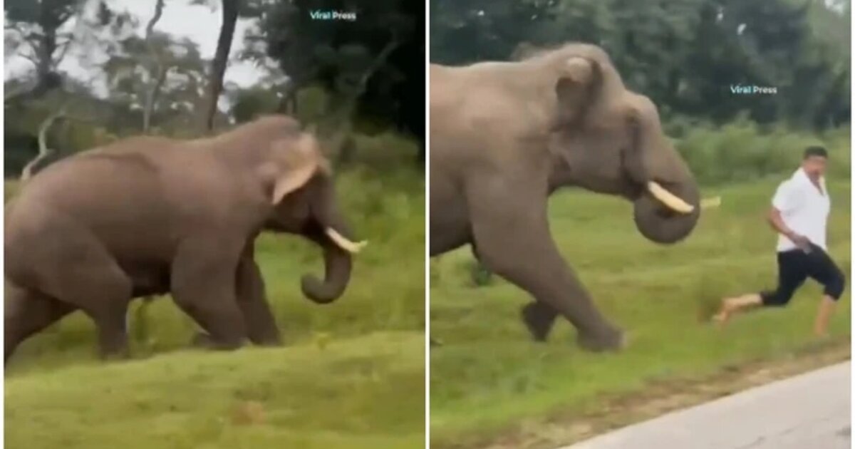 Βίντεο που τραβήχτηκε την Κυριακή δείχνει το τεράστιο ζώο να καταδιώκει τον άνδρα, ο οποίος τρέχει να σωθεί. Ο τουρίστας, ονόματι Ρ. Μπασαβαράτζου, φέρεται να είχε εισβάλει σε απαγορευμένη δασική περιοχή κοντά σε ναό. Το περιστατικό καταγράφηκε από επισκέπτες στο κρατικό καταφύγιο της Καρνατάκα και αναρτήθηκε στο διαδίκτυο.