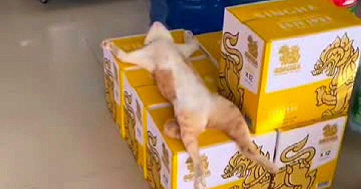 Αυτή την φορά, στις 3 Ιουνίου, προτίμησε να απλωθεί πάνω σε κιβώτια μπύρας και όπως πάντα δεν ξυπνούσε με τίποτα....