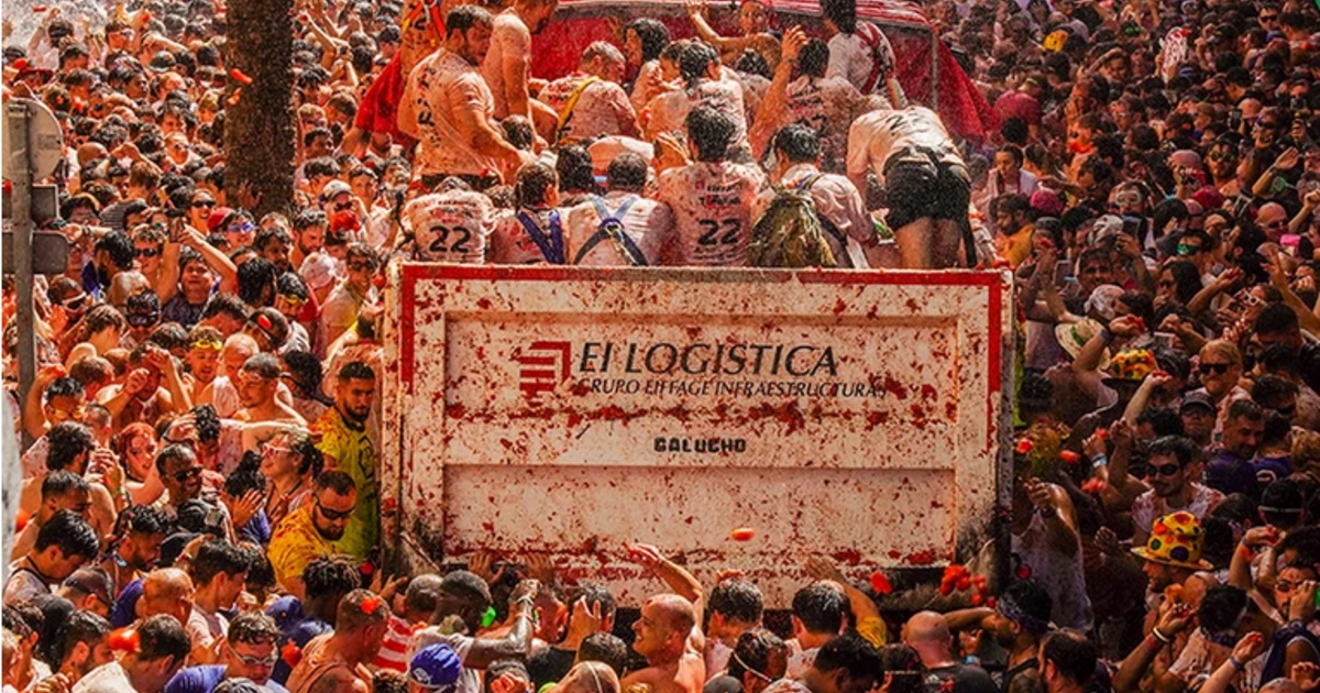 Έξι φορτηγά με υπερώριμες ντομάτες κυκλοφορούσαν στους στενούς δρόμους της Μπουνόλ και μοίραζαν τα οπωροκηπευτικά στους παρευρισκόμενους, που γέμισαν τους δρόμους, και τους ίδιους με τον κόκκινο πολτό.