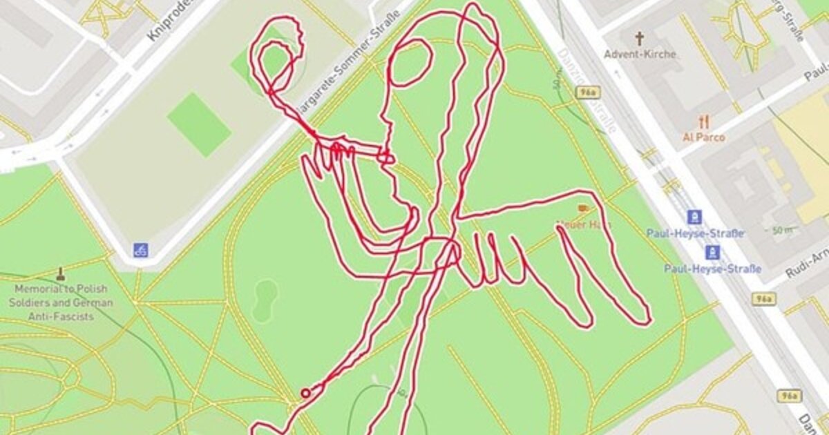 Με μια εφαρμογή GPS για «πινέλο» και το πάρκο Φόλκσπαρκ Φρίντριχσαϊν του Βερολίνου για «καμβά» ο 67χρονος αθλείται καθημερινά δημιουργώντας τη δική του «τέχνη».