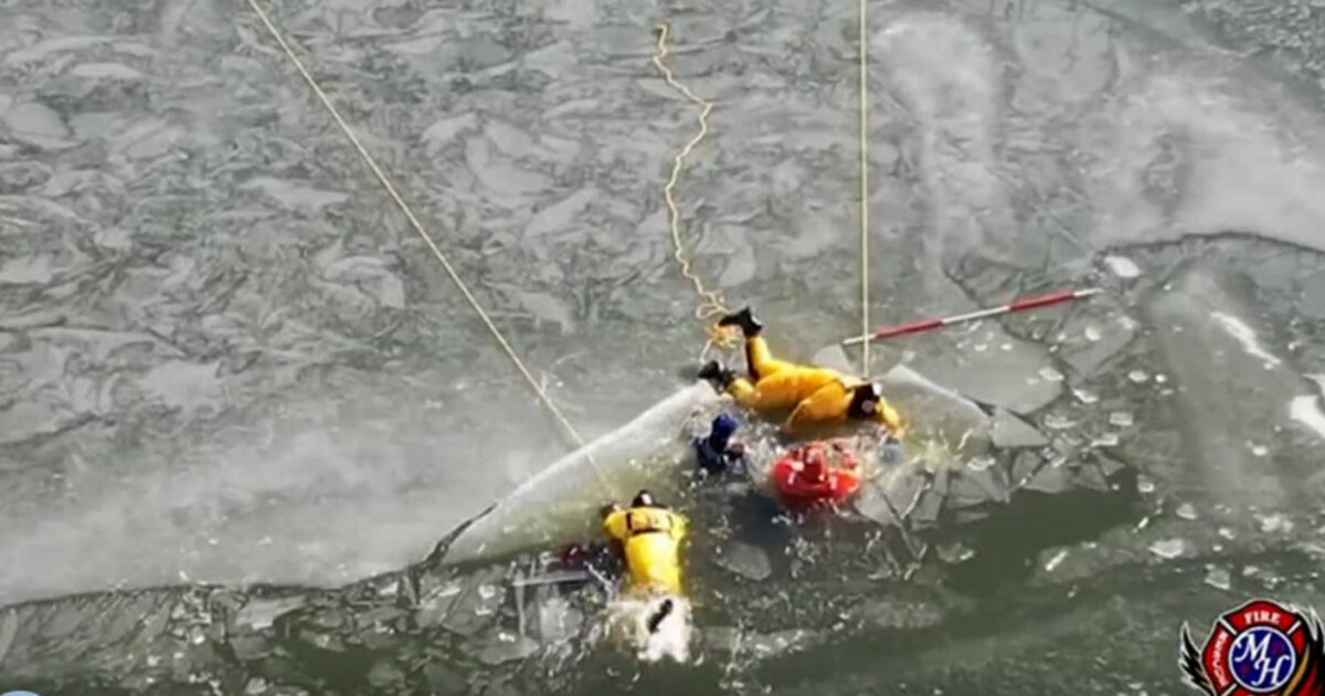 Οι πυροσβέστες έπεσαν αμέσως στα παγωμένα νερά για να τους σώσουν και ευτυχώς τους έβγαλαν μέσα σε λίγα λεπτά.
