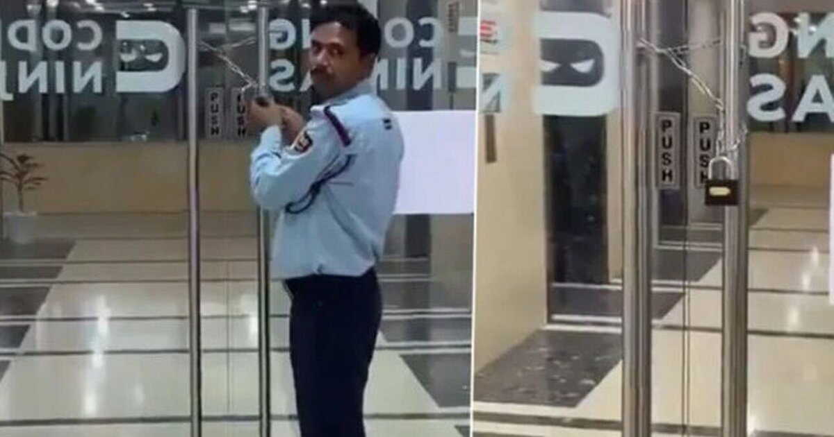 Βίντεο που κάνει τον γύρο του διαδικτύου δείχνει τον τον φύλακα του κτηρίου να κλειδώνει την πόρτα της κύριας εισόδου κατόπιν εντολής ενός διευθυντή.