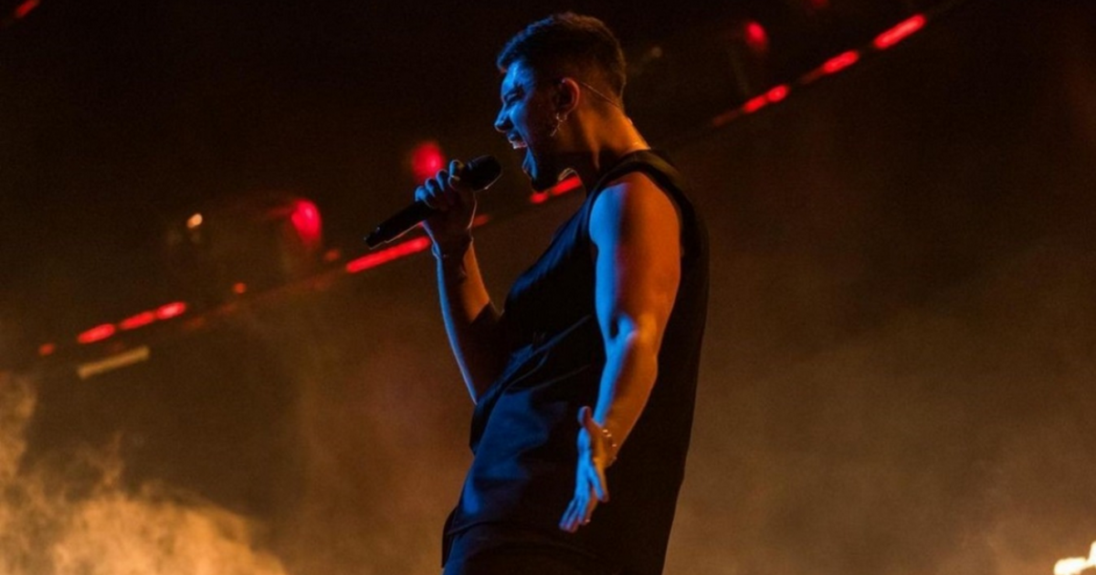 Ο νεαρός τραγουδιστής έδωσε ένα σόου με αντιφατικά εφέ, αφού από τη μία «καίγεται» στις φλόγες και από την άλλη «ρέει» ανάμεσα σε καταρράκτες.