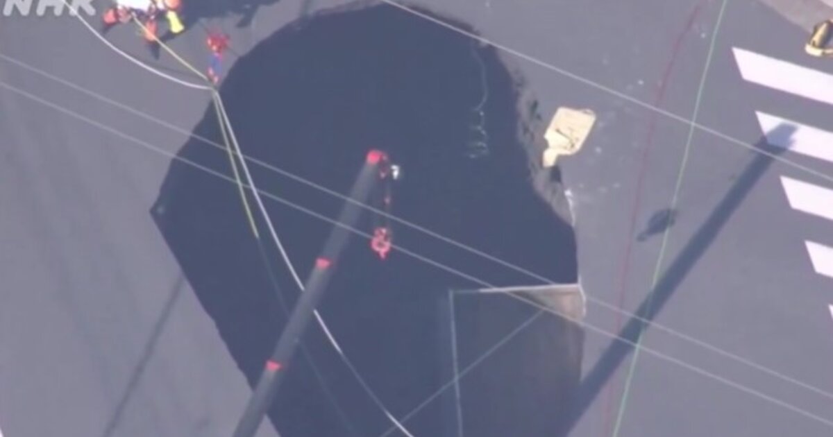 Σχεδόν οκτώ ώρες μετά την κατάρρευση, ο οδηγός παρέμενε παγιδευμένος στο όχημα, καθώς το κάθισμα του οδηγού είχε γεμίσει με άμμο και λάσπη, σύμφωνα με το τηλεοπτικό δίκτυο Nippon TV. Οι ομάδες διάσωσης διοχέτευαν οξυγόνο μέσα στο κρατήρα, προσπαθώντας να διατηρήσουν τον οδηγό ζωντανό.
