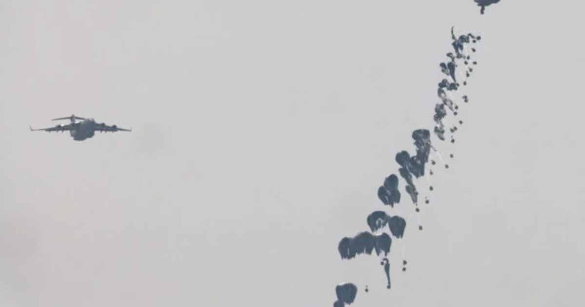 Εν μέσω προειδοποιήσεων για επικείμενο λιμό στη σπαρασσόμενη από τον πόλεμο Λωρίδα της Γάζας, οι ρίψεις από αέρος πραγματοποιήθηκαν μετά τις πρόσφατες χερσαίες παραδόσεις 2.000 τόνων βρετανικής επισιτιστικής βοήθειας για τη σίτιση περισσοτέρων από 275.000 ανθρώπων στο παλαιστινιακό αυτό έδαφος.