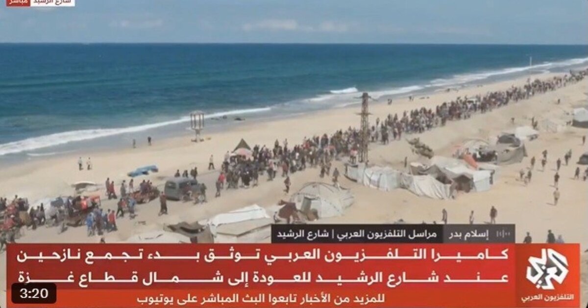 Πλάνα δείχνουν ότι εκατοντάδες κάτοικοι που περίμεναν στον δρόμο αλ-Ρασίντ, κατά μήκος των ακτών της Γάζας από χθες, άρχισαν να μετακινούνται βόρεια, πίσω στα σπίτια τους, τα τελευταία λεπτά.