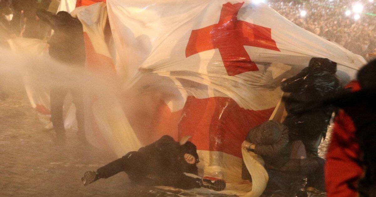 Η αστυνομία χρησιμοποίησε κανόνια νερού και σπρέι πιπεριού για να διαλύσει τα πλήθη έξω από το κτίριο του κοινοβουλίου. Ορισμένοι διαδηλωτές εθεάθησαν να πέφτουν στο έδαφος και να βήχουν, ενώ άλλοι κυμάτιζαν σημαίες της ΕΕ και της Γεωργίας.