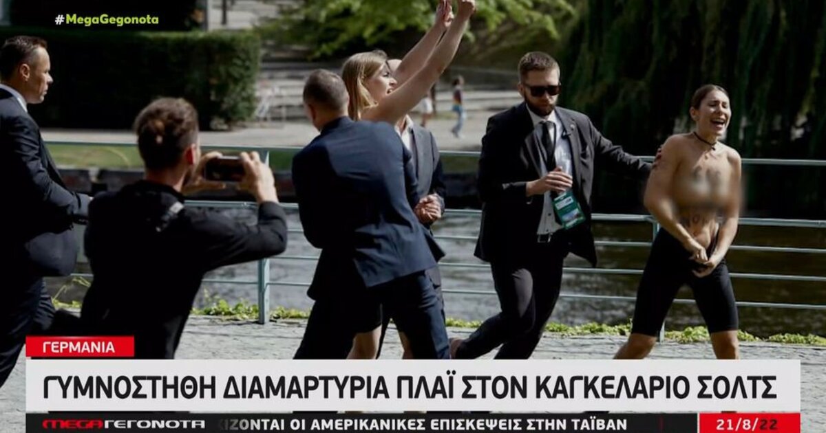 Δύο ακτιβίστριες αιφνιδίασαν τον καγκελάριο Όλαφ Σολτς, καθώς γύμνωσαν τα στήθη τους απαιτώντας εμπάργκο στο ρωσικό φυσικό αέριο.