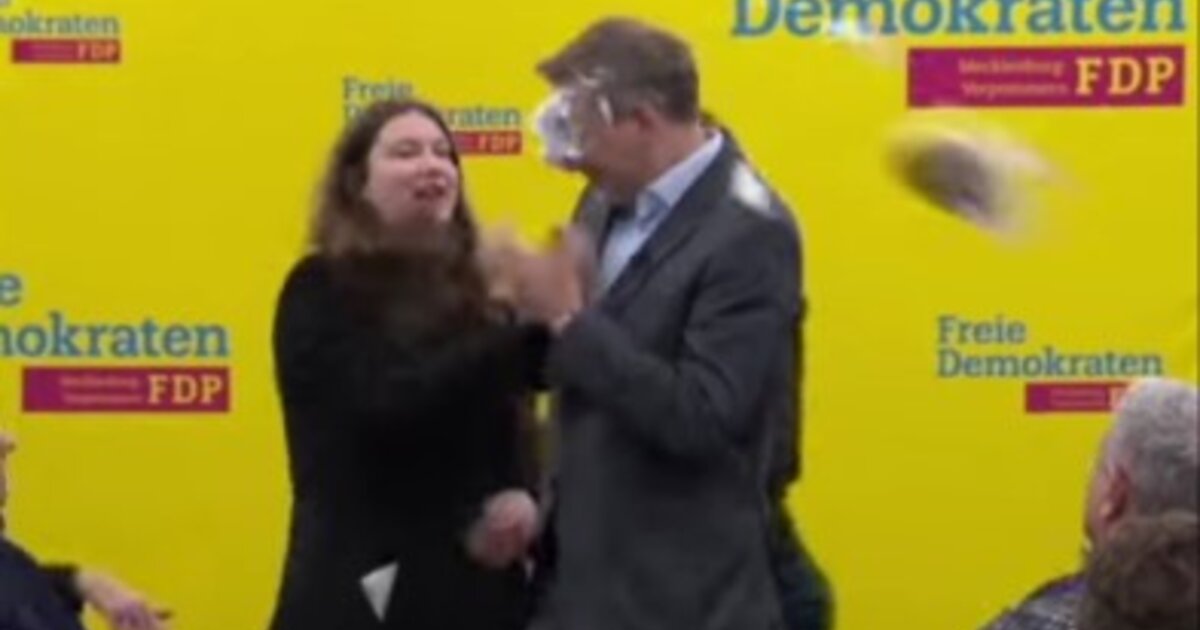 Μια τούρτα στο πρόσωπο δέχθηκε ο ηγέτης του FDP Κρίστιαν Λίντνερ κατά τη διάρκεια ομιλίας του σε προεκλογική εκδήλωση του κόμματός του στο κρατίδιο του Μεκλεμβούργου-Δυτικής Πομερανίας της Γερμανίας.