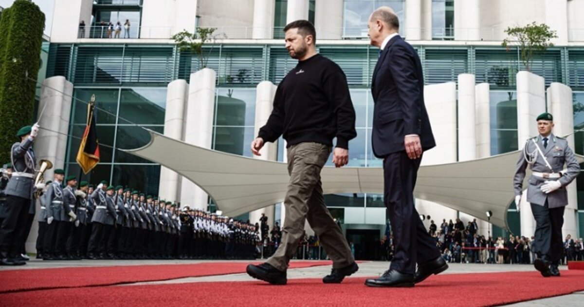 Ο Ζελένσκι είχε χθες (14/5) συνομιλίες με τον Γερμανό καγκελάριο Όλαφ Σολτς, με πολλά σημεία του κεντρικού Βερολίνου να έχουν αποκλειστεί για λόγους ασφαλείας κατά τη διάρκεια της επίσκεψής του.