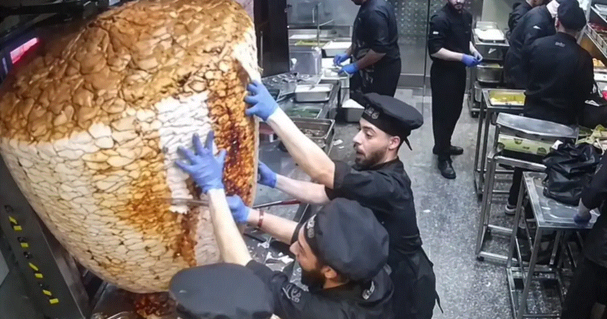 Οι εργαζόμενοι στο σουβλατζίδικο στην Αίγυπτο είχαν ετοιμάσει μια τεράστια ποσότητα ντονέρ στη σούβλα, δημιουργώντας έναν πραγματικά εντυπωσιακό γύρο με δεκάδες κιλά κρέας.