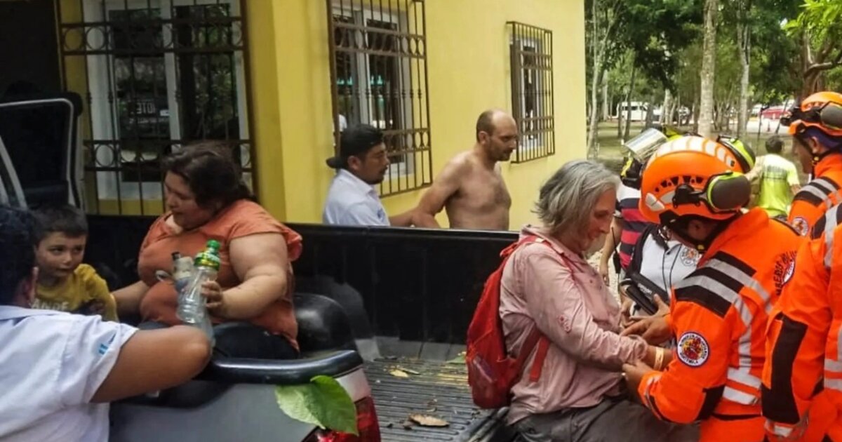Σε εικόνες που δημοσιοποίησαν διασώστες, διακρίνονται οι τέσσερις τουρίστες να δέχονται ιατρική φροντίδα προτού μεταφερθούν στην πρωτεύουσα της Γουατεμάλας.