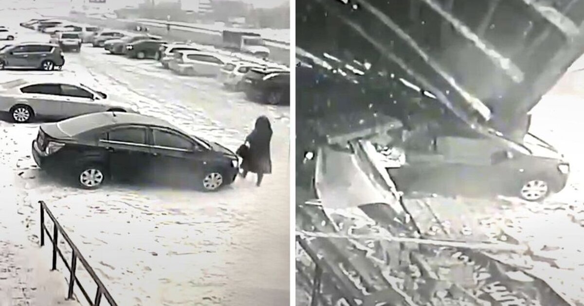 Φύλακα άγγελο είχε γυναίκα στο Μπαρναούλ της Ρωσίας, όταν σκεπή κατέρρευσε πάνω στο αυτοκίνητο της πριν λίγες ημέρες.